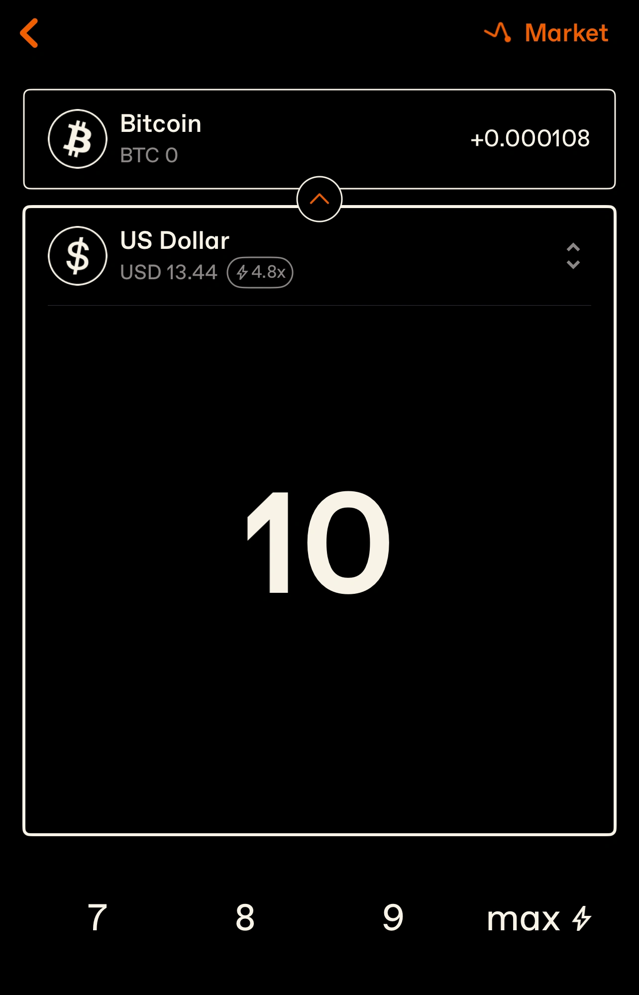 点击Trade后,可以看到好多的货币,你也可以自己选择。比如我们买上10美元的btc。✸可以用法币买,也可以用Usdt买都可以 ✸0手续费✸。