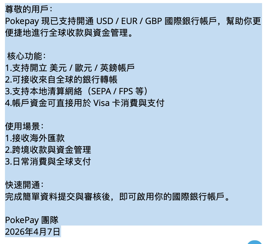 从公开资料看,PokePay 的国际银行账户已经走到哪一步了?