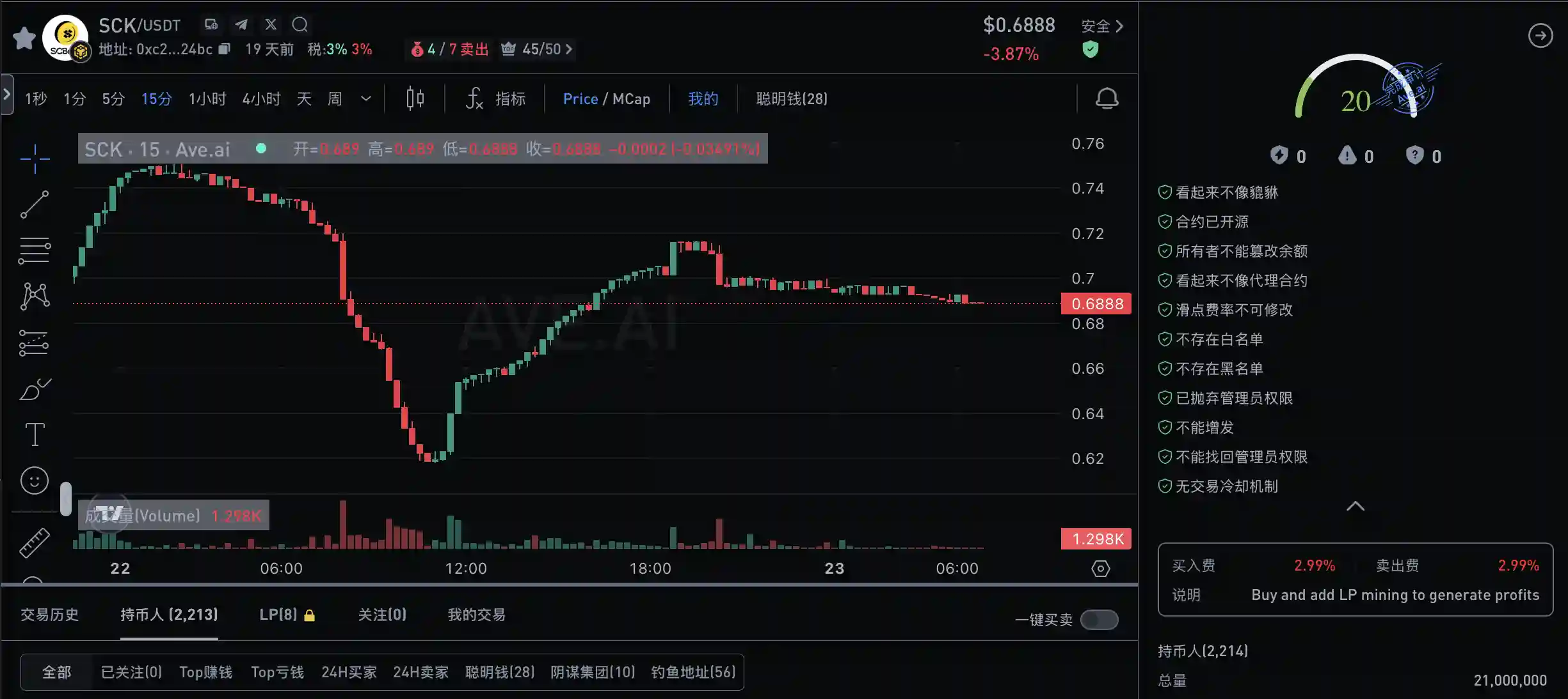 💲SCK当天币价:$0.68914